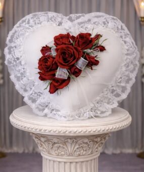 Showing all 6 results P0050: Red Rose Heart Pillow $150.00 P0060: Rose Pillow $150.00 P0100: Satin Heart Pillow with Red Flowers $125.00 P0110: Satin Heart Pillow with White Flowers $125.00 P0120: Satin Cross Pillow with Pink Flowers $125.00 P0200: Satin Cross Pillow with Red and White Flowers $125.00