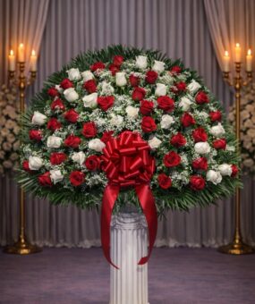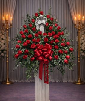 Showing all 8 results RB0050: Red rose basket with statue $425.00 RB0450: Red Rose Basket with Ty Leaf $425.00 RB0060: White rose basket with statue $365.00 RB0150: Red and white rose basket $320.00 RB0200: pink and white rose basket $310.00 RB0250: All white rose basket $325.00 RB0300: White Rose Basket with Stand $475.00 RB0260: White and purple rose basket $345.00