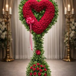 H0750: Open red carnation heart with lemon leaf