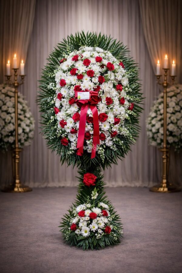 S0750: White and red assorted spray Product Description: An assorted spray of white and red flowers with a bow in the center. $315.00 $315.00 Pricing Options Choose an optionStandard PackageSilver PackageGold PackageClear Quantity Add to cart For details, please call: 718-238-6978 SKU: S0750 Category: Standing SPRAYS Attachment