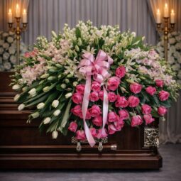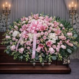 CS1500: Assorted Pink and White Casket Spray with Lillies