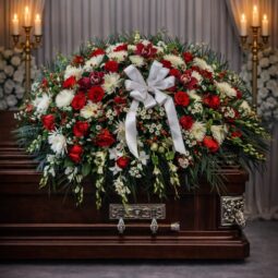 CS0650: Red and White Assorted Cascading Casket Spray
