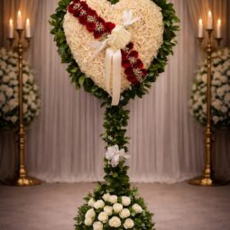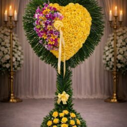 H0360: Yellow Rose Heart with colorful burst and palm leaf