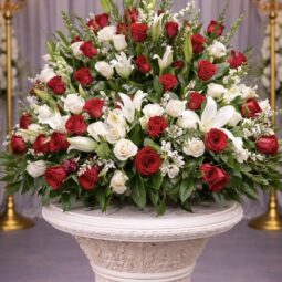 UW0250: White & Red Rose and Calla Lilly Urn Wreath