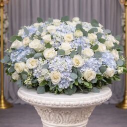 UW0300: White Rose and Blue Hydrangea Urn Wreath